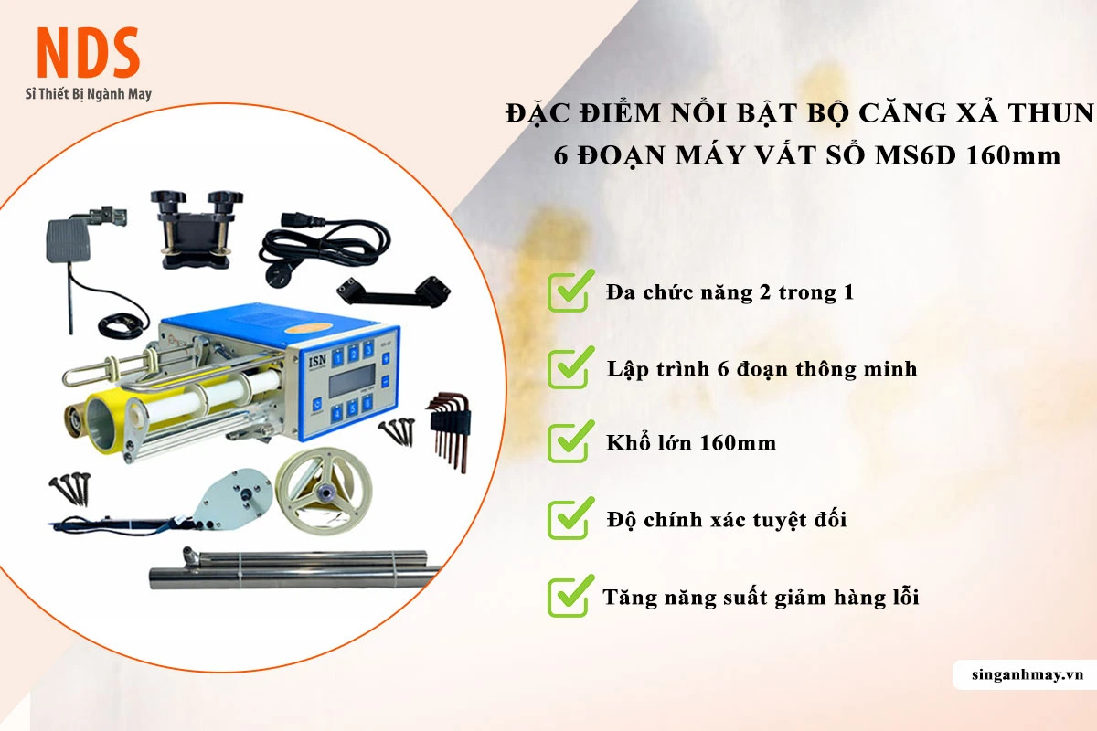 Bộ căng xả thun MS6D 160mm (Elastic Tape Feeder) là thiết bị ngoại vi cao cấp được thiết kế để lắp đặt trực tiếp trên các dòng máy vắt sổ công nghiệp. Với khả năng điều chỉnh 6 thông số khác nhau, thiết bị này cho phép người dùng kiểm soát linh hoạt độ căng và tốc độ cấp thun, phù hợp với nhiều loại vải và yêu cầu kỹ thuật khắt khe