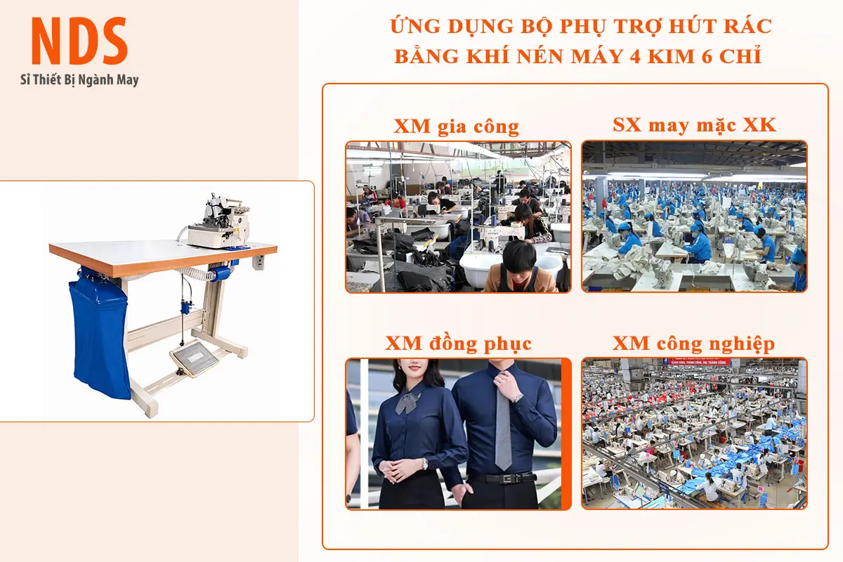 Thiết bị đặc biệt phù hợp với các chuyền may có cường độ sản xuất cao, nơi phát sinh nhiều rác vải và chỉ thừa