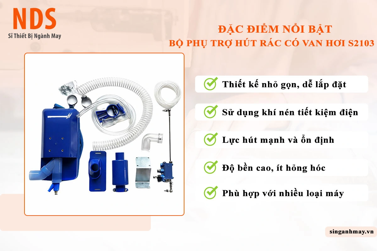 Bộ hút rác S2103 được nhiều xưởng may lựa chọn nhờ các đặc điểm nổi bật sau: