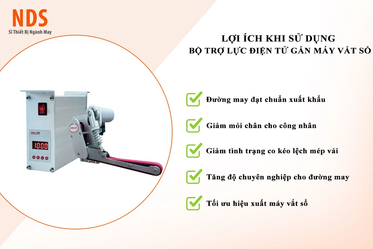Trong các chuyền may công nghiệp hiện nay, việc tăng tốc độ nhưng vẫn đảm bảo đường may ổn định là yếu tố then chốt quyết định năng suất. Bộ trợ lực điện tử gắn máy vắt sổ loại sát chân vịt là giải pháp tối ưu giúp kéo vải đều, giảm lỗi đường may và nâng cao hiệu quả sản xuất