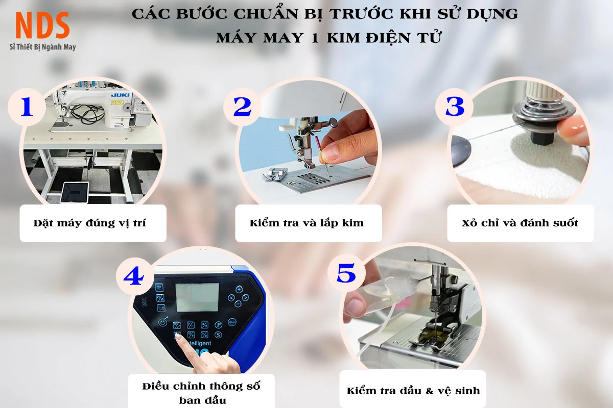 Các bước chuẩn bị trước khi sử dụng máy may 1 kim điện tử