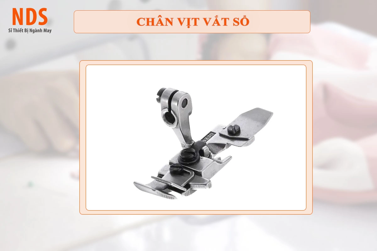 Công dụng: Dành cho máy đa năng muốn giả vắt sổ. Nó có một thanh chắn ở giữa để giữ cho mép vải luôn phẳng khi chỉ bao quanh, tránh tình trạng vải bị cuốn vào trong gây rối chỉ