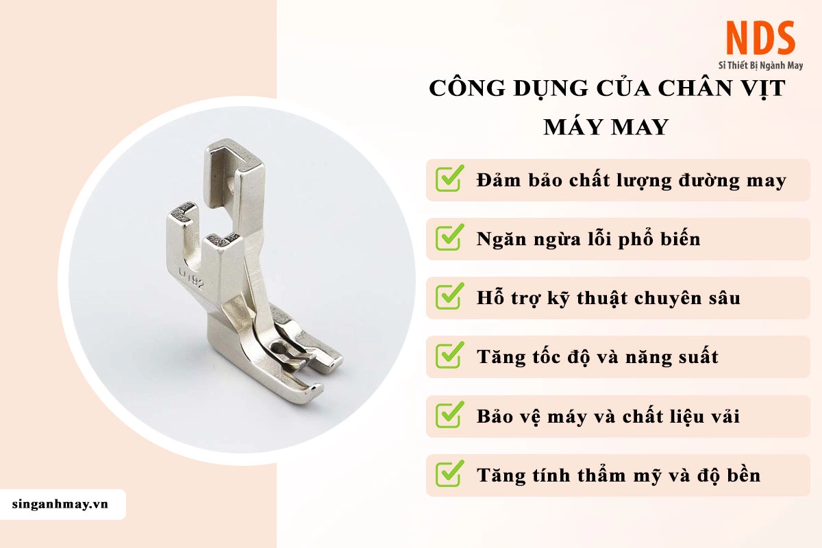 Việc sở hữu bộ chân vịt chất lượng sẽ giúp công việc may vá của bạn trở nên dễ dàng và chuyên nghiệp hơn rất nhiều. Tại NDS, chúng tôi cung cấp đầy đủ các loại chân vịt chính hãng từ các thương hiệu nổi tiếng, phù hợp cho cả máy gia đình (Brother, Singer, Janome) và máy công nghiệp (Juki, Pegasus, Yamato)