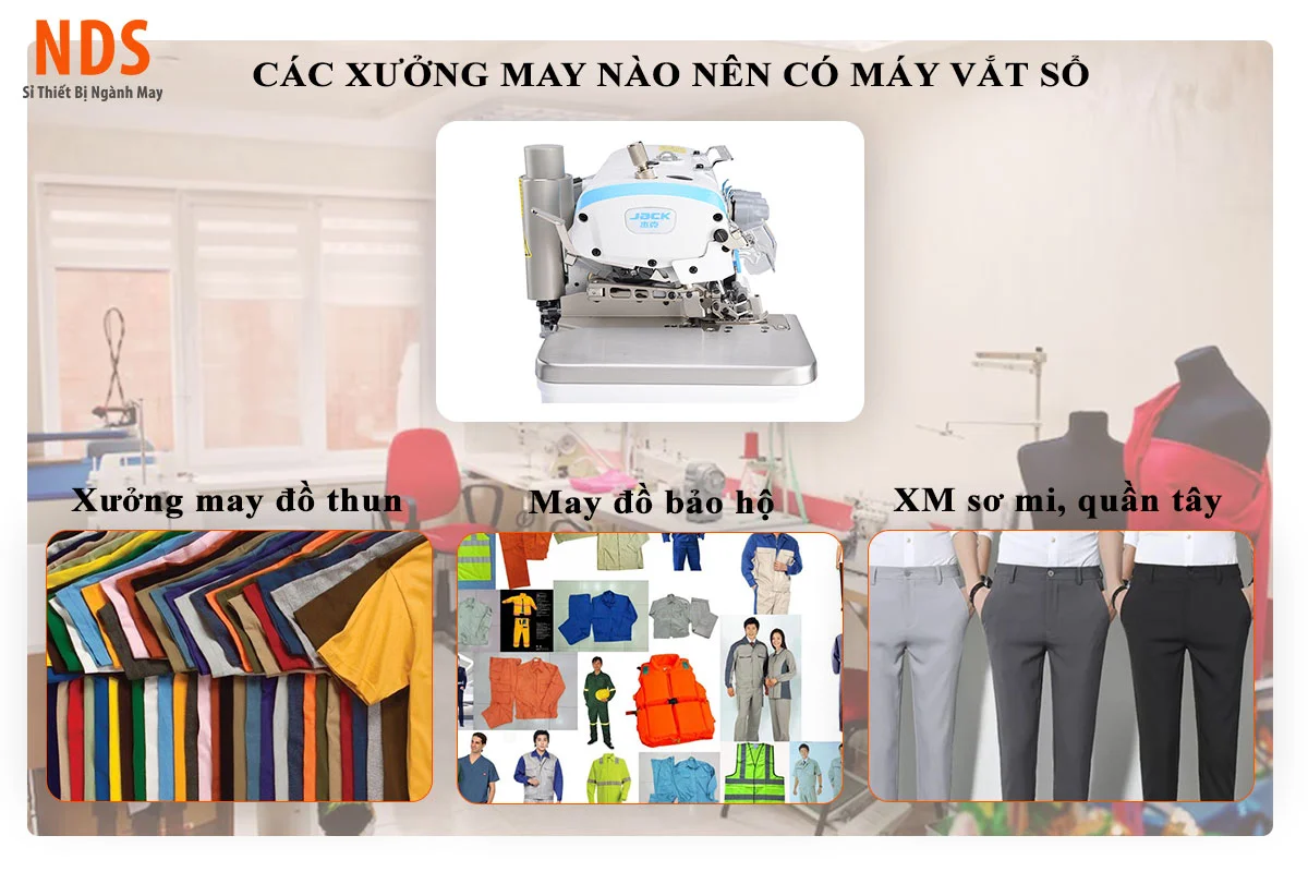 - Xưởng may đồ bảo hộ lao động: Cần đường vắt sổ chắc chắn để đảm bảo độ bền trong môi trường làm việc nặng