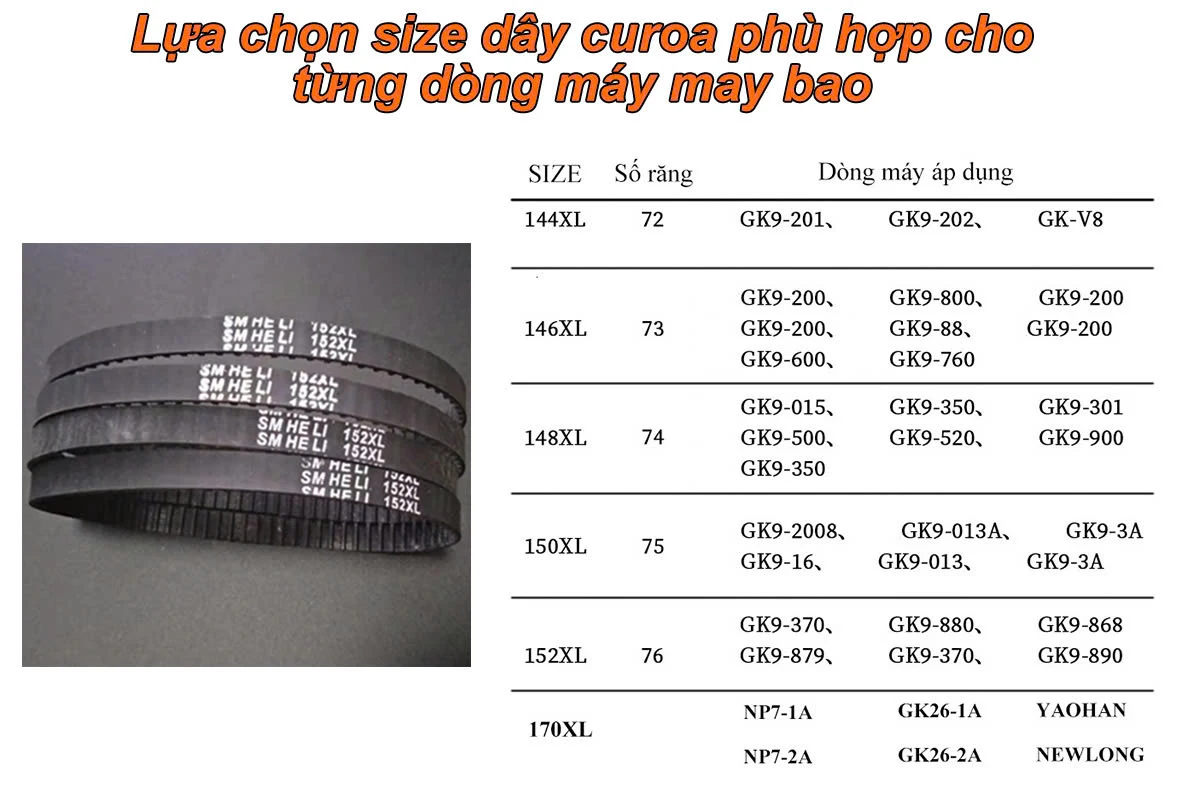 Bạn đang gặp tình trạng máy may bao cầm tay hoạt động yếu, trượt, không ổn định? Đã đến lúc thay dây curoa chuyên dụng cho máy may bao cầm tay để khôi phục hiệu suất tối ưu. Dây curoa máy khâu bao cầm tay được làm từ cao su chất lượng cao, độ bền vượt trội, đảm bảo truyền động ổn định và kéo dài tuổi thọ máy.