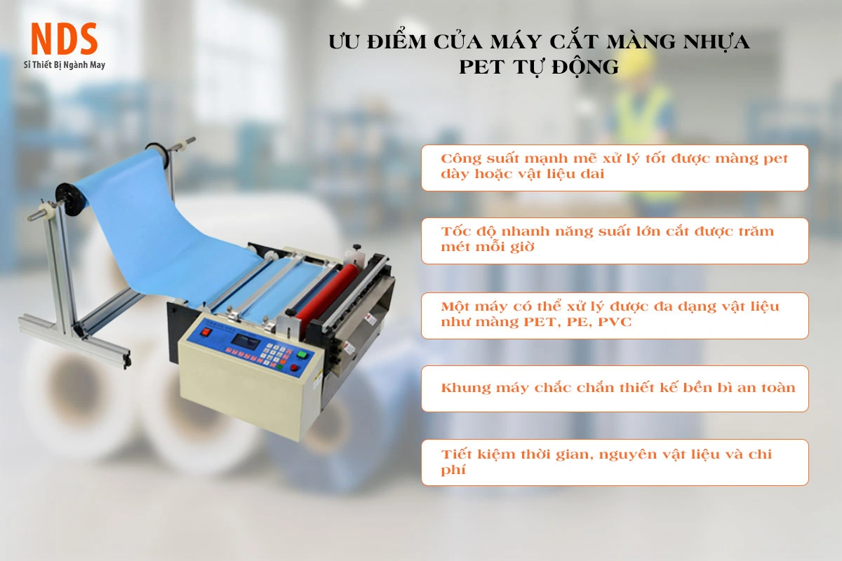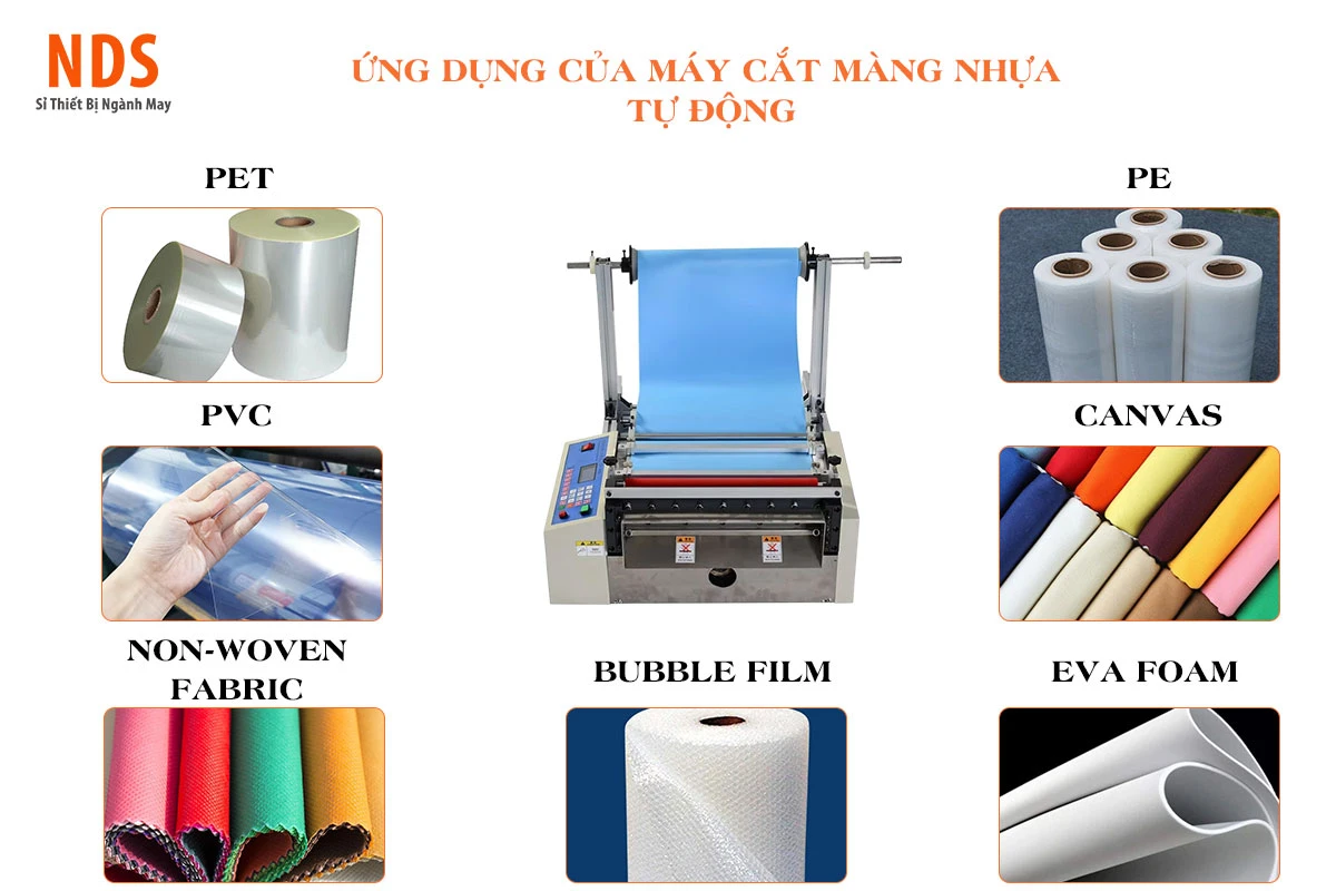 Linh hoạt ứng dụng: Một máy có thể xử lý đa dạng vật liệu như màng PET, PE, PVC, nhãn chai, phụ liệu may (vải không dệt, dây đai...), phù hợp với nhiều ngành nghề khác nhau