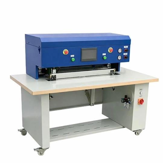 Máy gấp mép tự động bằng nhiệt là dòng máy chuyên dụng sử dụng hệ thống gia nhiệt kết hợp lực ép khí nén để định hình mép vật liệu (da thật, PU, vải không dệt). Khác với các dòng máy gấp nguội thông thường, công nghệ nhiệt giúp nếp gấp sắc nét, bám dính cực tốt và không bị đàn hồi lại, ngay cả với các loại da dày hoặc cứng