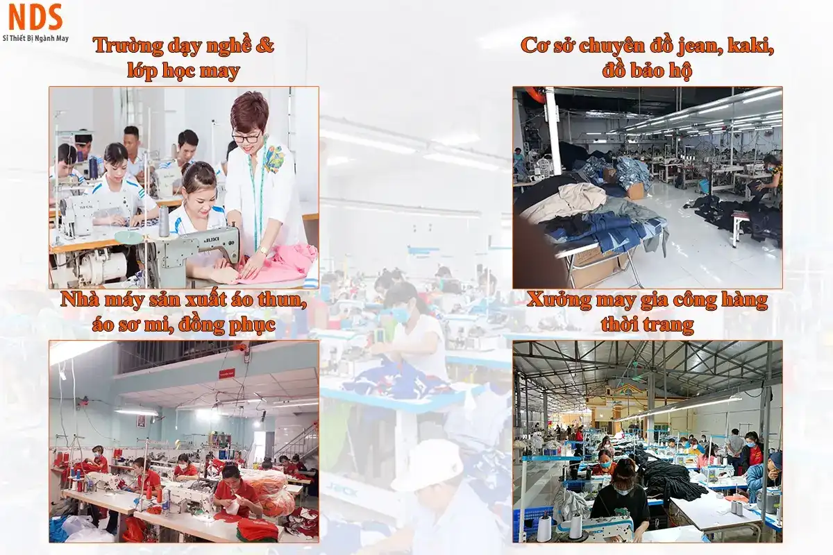 - Xưởng may OEM xuất khẩu: Tăng năng suất cho dây chuyền lớn, xử lý đa chất liệu từ thun đến canvas