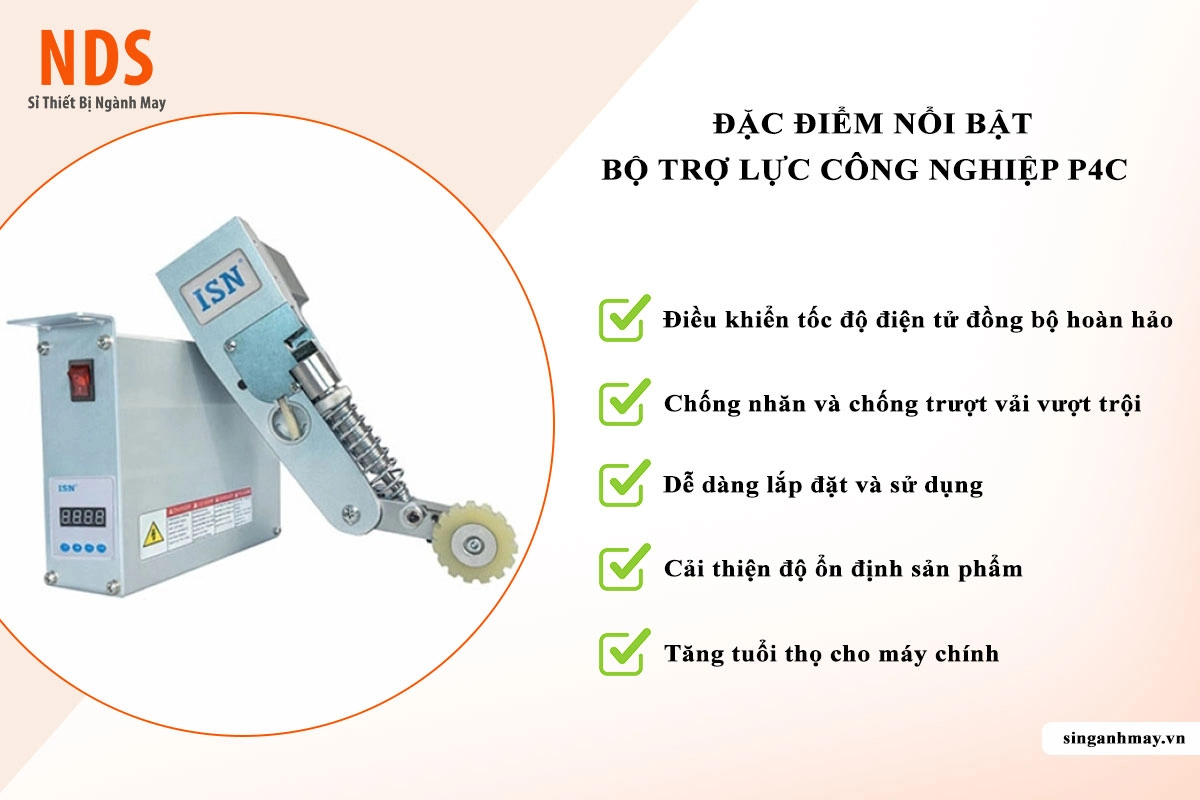 Trong các xưởng may chuyên sử dụng máy trần đè đầu túm, việc nâng – hạ đầu máy thường xuyên gây mỏi tay, giảm hiệu suất và ảnh hưởng tuổi thọ bản lề. Bộ phụ trợ trợ lực P4C ra đời nhằm tối ưu lực nâng, giúp thao tác nhẹ nhàng hơn, tăng năng suất và đảm bảo vận hành ổn định trong môi trường công nghiệp cường độ cao