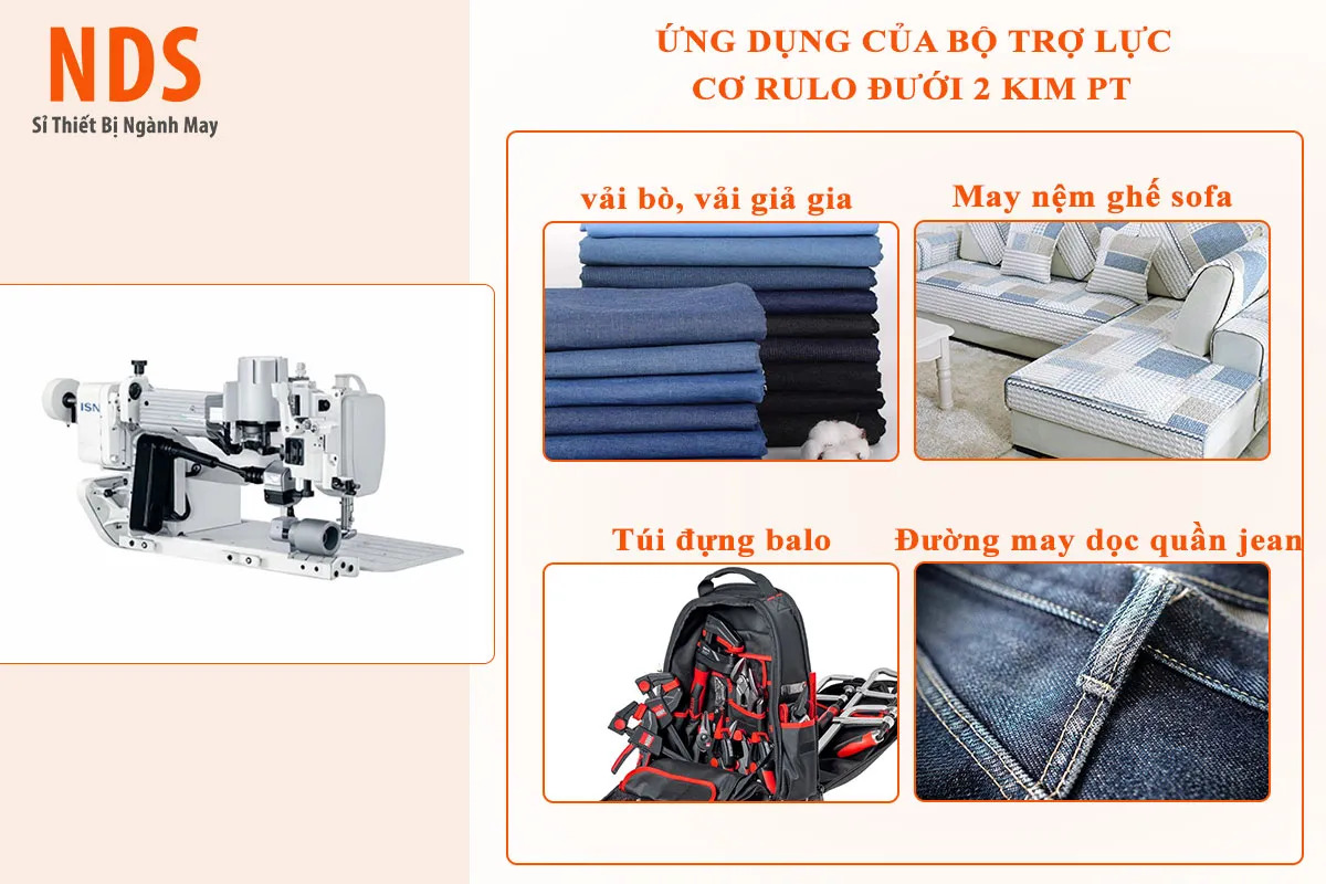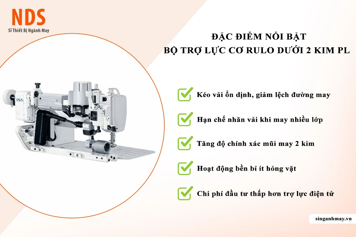 Trong quá trình may 2 kim, tình trạng vải trượt, lệch đường may, nhăn sóng hoặc sai bước chỉ là lỗi phổ biến khiến xưởng tốn thời gian sửa hàng. Bộ trợ lực cơ rulo dưới 2 kim PT ra đời nhằm giải quyết triệt để vấn đề này bằng cơ cấu kéo vải độc lập, ổn định và bền bỉ.Thiết bị đặc biệt phù hợp cho các xưởng may quần jeans, áo sơ mi, đồ thể thao, may thun co giãn hoặc may nhiều lớp vải dày