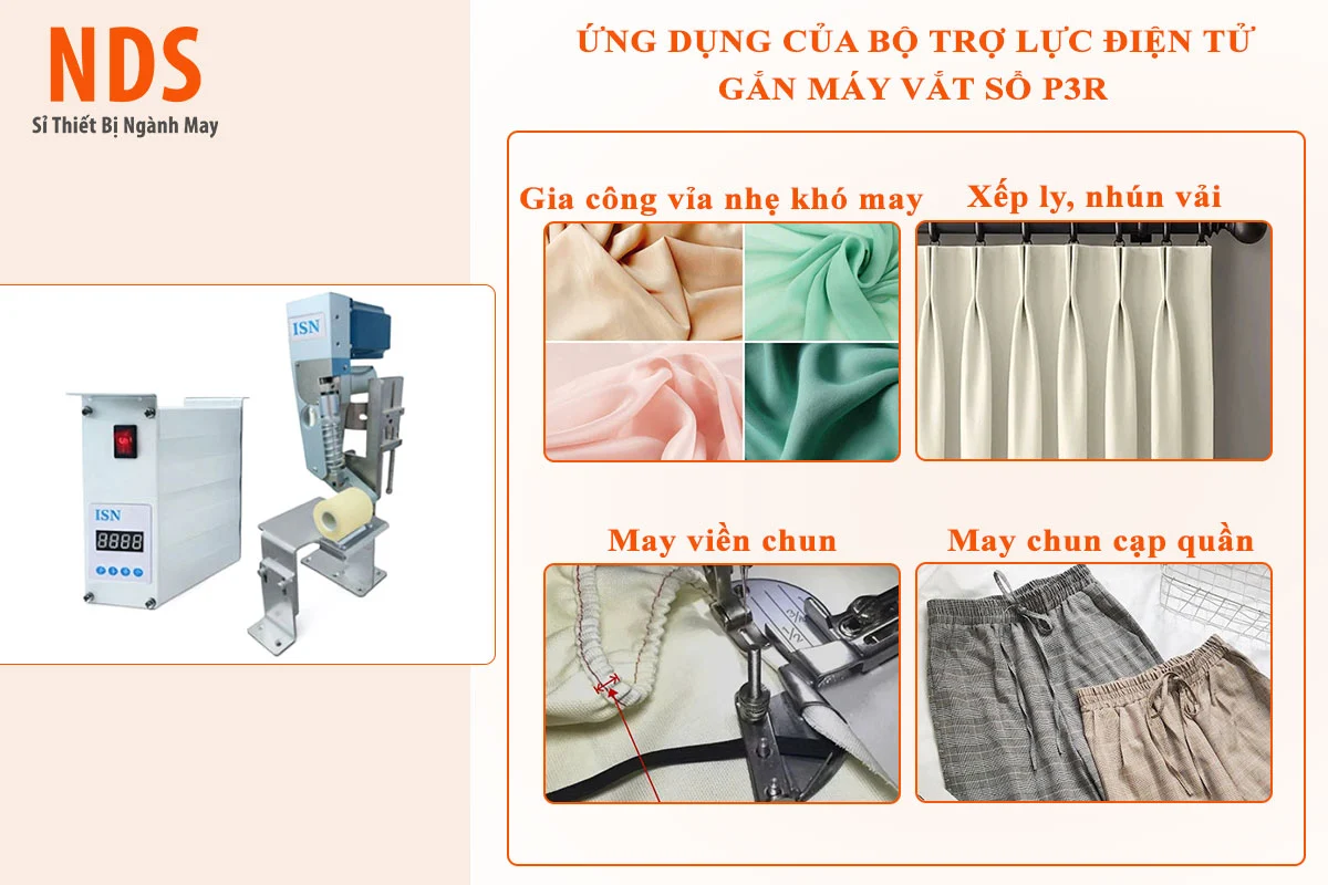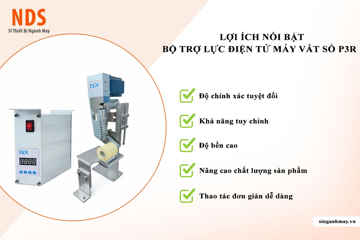 Bộ trợ lực P3R là dòng thiết bị phụ trợ cao cấp được thiết kế chuyên biệt cho các dòng máy vắt sổ (overlock). Sản phẩm sử dụng công nghệ điều khiển điện tử thông minh để hỗ trợ đẩy/kéo vải đồng bộ với tốc độ kim, giúp đường may luôn phẳng đẹp trên mọi chất liệu, từ thun mỏng đến jean dày