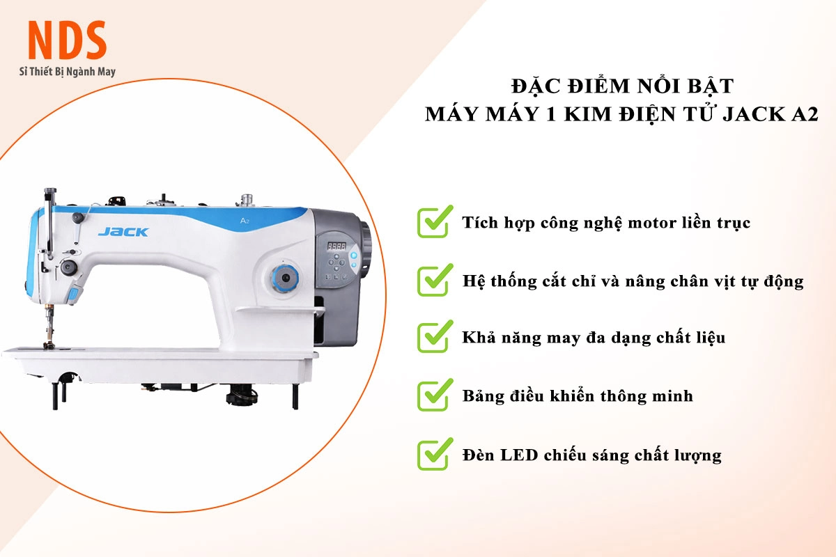 Jack A2 là dòng máy may 1 kim cơ bản nhưng được nâng cấp hệ thống điều khiển điện tử thông minh. Khác với các dòng máy cơ truyền thống, Jack A2 sở hữu motor liền trục (Direct Drive), giúp máy vận hành êm ái, giảm rung lắc và loại bỏ các vấn đề về dây curoa. Đây là model tiêu biểu của thương hiệu Jack – thương hiệu máy may bán chạy số 1 thế giới hiện nay